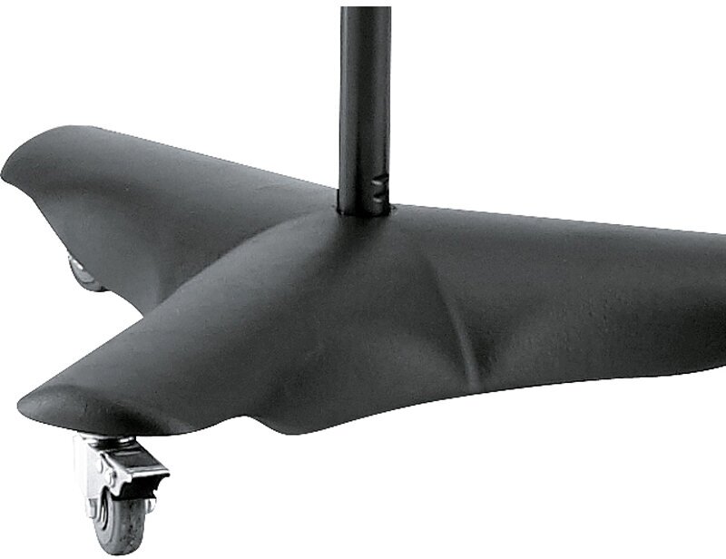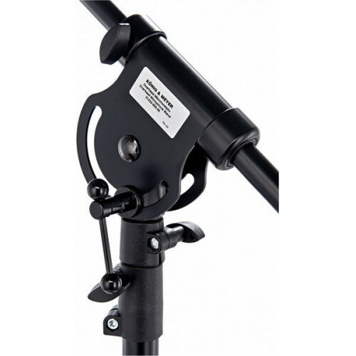 Микрофонная стойка-оверхед для студии или сцены. Тяжелое металлическое основание 10 кг на 3-х колесиках с блокировкой, центр тяжести для обеспечения высокого уровня безопасности, диаметр базы 660 мм. Высота прямой стойки регулируется от 1340 до 2210 мм и имеет дополнительный механизм блокировки. Выдвижная стрела с противовесом 3 кг и соединительной резьбой 5/8 , у нее также изменяемая длина от 1070 до 1870 мм. Дополнительная мини-стрела 245 мм с соединительной резьбой 5/8 и 3/8 , полностью регулируемая независимо от положения главной стрелы, например, для использования со студийными микрофонами. Общий вес стойки 17,42 кг.