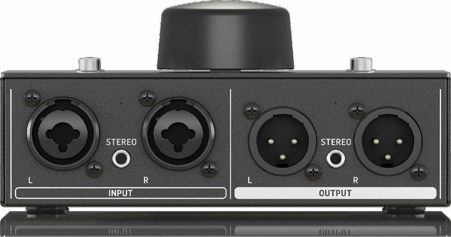Jack, и балансный выход в виде разъемов 2 x XLR. Входы и выходы продублированы по одному разъему миниджек 3.5 мм. Кнопка Mute и Mono. Частотный диапазон 10 Гц - 100 кГц . Входное сопротивление 10 кОм (балансное), 5 кОм (небалансное). Прочный металлический корпус.