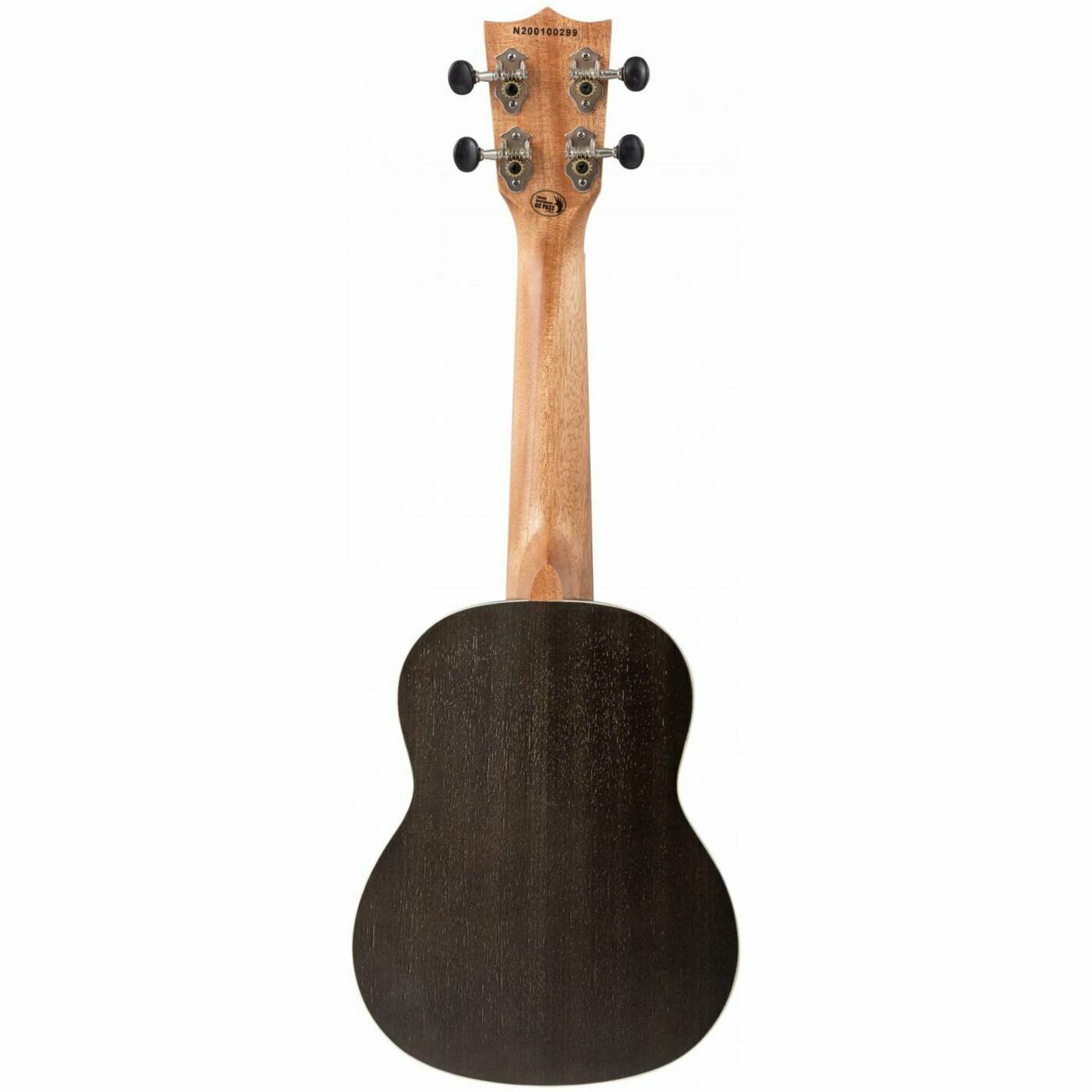 Укулеле в корпусе типа сопрано. Топ, обечайка и нижняя дека из африканского сапеле. Гриф сделан из африканского окуме. Бридж и накладка из ореха, костяные верхний и нижний порожки. 12 ладов с инкрустацией белыми точками, открытые хромированные колки, 1 стреплок. Комплектация включает в себя фирменный мягкий чехол.