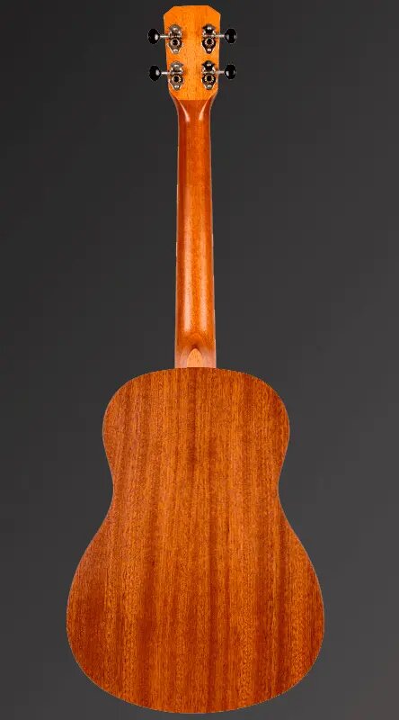 Укулеле размера баритон. Топ, нижняя дека и обечайка из ламината африканского сапеле. Гриф из окуме, накладка и бридж из ореха, верхний и нижний порожки из кости. Ширина верхнего порожка 1.49 дюймов. 19 ладов с инкрустацией, лазерная гравировка розетки, колки с открытым механизмом. Комплектация включает в себя мягкий чехол.
