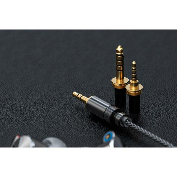 | Кабель | съемный, 8-жильный, 19 изолированных проводников из очищенной бескислородной монокристаллической меди с серебряным покрытием в каждой жиле (литцендрат), разъемы MMCX с корпусами из нержавеющей стали для подключения к наушникам, штекеры в 2,5 (TRRS), 3,5 (TRS) или 4,4 (TRRS) мм на выбор (патент Fabrilous) |