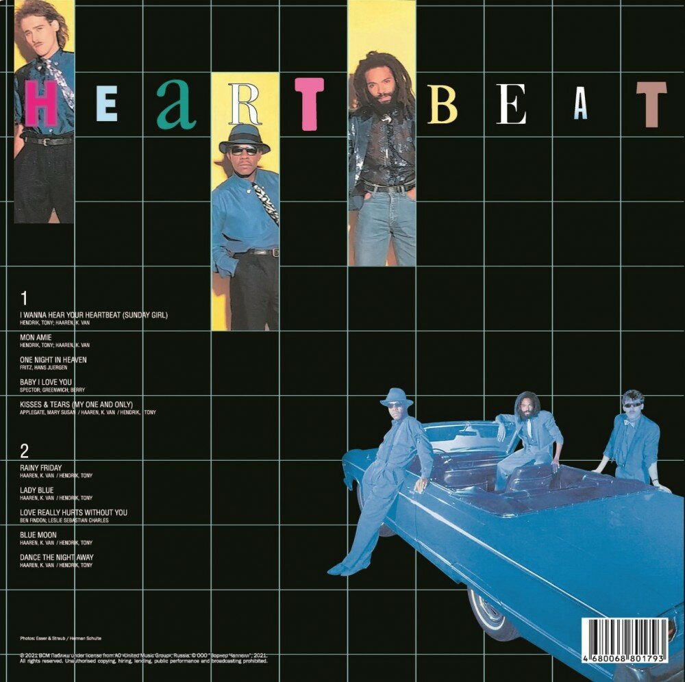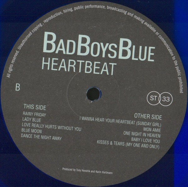Второй альбом Bad Boys Blue "Heartbeat", впервые выпущенный в 1986 году, добавил в творческий багаж группы еще пару международных ов "Kisses And Tears" и "I Wanna Hear Your Heartbeat". В СССР главная тема пластинки так вдохновила молодого Олега Газманова, что он без зазрения совести взял и использовал проигрыш песни для своего а "Эскадрон", с которым добился успеха на эстраде.Список музыкальных треков:Side A: I Wanna Hear Your Heartbeat (Sunday Girl)Mon AmieOne Night In HeavenBaby I Love YouKisses & Tears (My One And Only)Side B Rainy FridayLady BlueLove Really Hurts Without YouBlue MoonDance The Night Away.