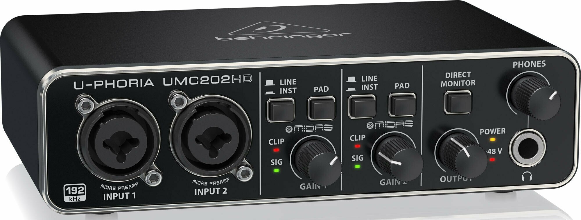 Комплект для записи, состоящий из 2-канального USB-аудиоинтерфейса U-PHORIA UMC202HD, конденсаторного микрофона C-1 и закрытых наушников HPS5000. АЦП/ЦАП до 24 бит/192 кГц, предусилители Midas, фантомное питание +48 В. Питание и подключение по USB. В комплекте USB-кабель, держатель и кабель для микрофона, адаптер для наушников.