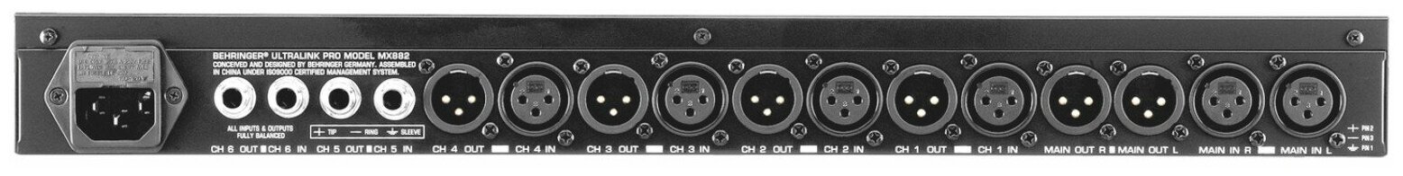 | Выходы | 2 x XLR main out, 4 x XLR ch 1-4 out, 2 x 1/4'' Jack TRS ch 5-6 out |
