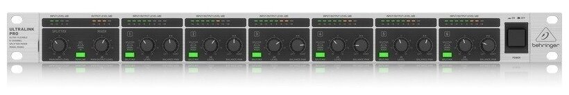 Профессиональный 8-канальный микшер/сплиттер. Общие вход и выход на разъемах XLR, 4 входа и 4 выхода на разъемах XLR, 2 входа и 2 выхода на разъемах 1/4'' Jack TRS. Кнопка Split/Mix, регуляторы громкости и панорамы, цветная индикация уровня для каждого канала. Прочный рэковый корпус высотой 1U с креплением, энергообеспечение от сети.