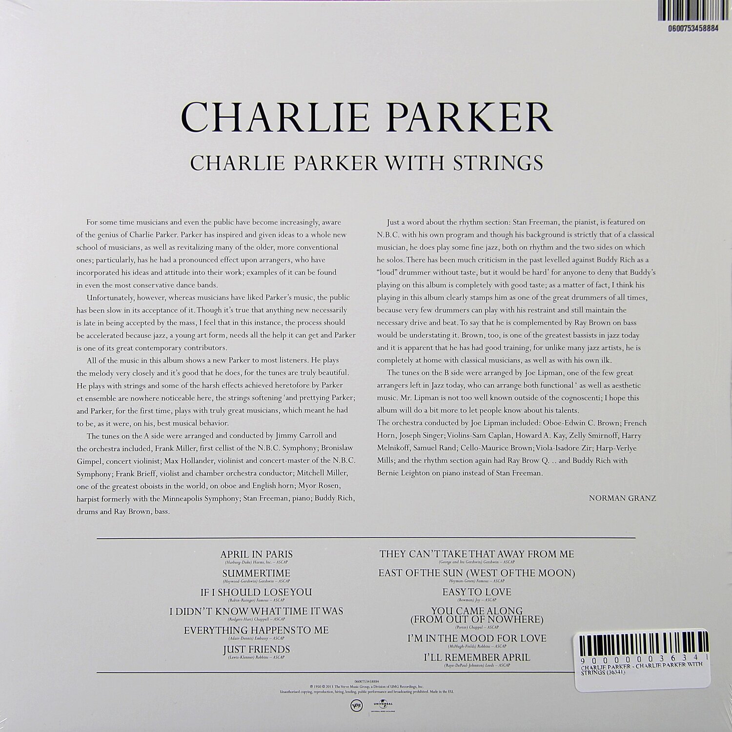 Виниловая пластинка Charlie Parker Charlie Parker With Strings (0600753458884) USM/Universal (UMGI)