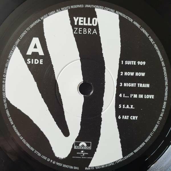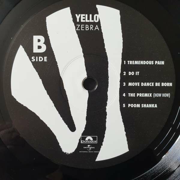 A1. Suite 909A2. How HowA3. Night TrainA4. I. I'm In LoveA5. S. A. X. A6. Fat CryB1. Tremendous PainB2. Do ItB3. Move Dance Be BornB4. The Premix (How How)B5. Poom Shanka"Zebra" - лимитированное, ремастированное переиздание студийного альбома группы Yello, первоначально выпущенного в 1994 году. Релиз представлен на черном виниле. Yello - швейцарская электро-поп-группа из Цюриха (Швейцария), основанная в 1978 году Борисом Бланком, Карлосом Пероном и Дитером Майером. История коллектива началась в 1967 году, когда Борис Бланк стал записывать свои первые музыкальные опусы на магнитофон. За неимением инструментов он начал использовать кухонную утварь: деревянные подставки, хрустальные бокалы, ключи и ножи. Свои неожиданные находки он долгое время пытался приспособить в различных группах, но без особенного успеха. Переломной стала для Бориса встреча со звукорежиссёром и музыкантом Карлосом Пероном. С ним Бланк смог наконец-то создать свою первую профессиональную студию. В 1978 году они предприняли путешествие в Сан-Франциско, чтобы познакомиться со своими кумирами - авангардистской группой The Residents. Вернувшись в Швейцарию, Бланк и Перон вскоре встретились с человеком, который позже стал членом Yello. Это был Дитер Майер, сын богатого отца, имевший за плечами бурную биографию: брак с наследницей пышного аристократического титула, побег из семейного замка с намерением стать деятелем искусства, работа в качестве журналиста, автора детских книг и режиссёра экспериментальных фильмов, членство в сборной команде Швейцарии по гольфу. Дитер легко вписался в группу, и в 1979 году проект приобрел законченность. Дебютный альбом записывался на американском лейбле Ralph, владельцами которой были музыканты из "The Residents". На этом диске появились танцевальные номера с сочной ритмикой ("Night Flanger", "Eternal Legs", "Bostich"). Музыкальный компот содержал изрядную долю юмора как, например, в композициях "Downtown Samba" и "Coast to Polka". Инструментовки находились где-то между современной академической музыкой и влияниями Pink Floyd, Tangerine Dream, Жана-Мишеля Жарра. Вышедший через год второй диск в сравнении с первым обладал большей строгостью в аранжировке. Уже первые альбомы группы оказались превосходными образцами семплерной технологии, представляющими сказочное царство звуков. Критики также обратили внимание, что тексты Yello населены самыми диковинными персонажами - коварными обольстительницами, коммивояжёрами, рекламирующими несусветные вещи, агентами тайной полиции и автогонщиками, крутящими на стуле воображаемую баранку. Покорение мира швейцарцами началось с выпуска пластинки "You Gotta Say Yes To Another Excess". Альбом понравился как публике, так и критикам, а композиции "I Love You" и "Lost Again" стали хитами. Соединение игры слов в дадаистских текстах с элементами современной электронной музыки создавало определенную атмосферу и.