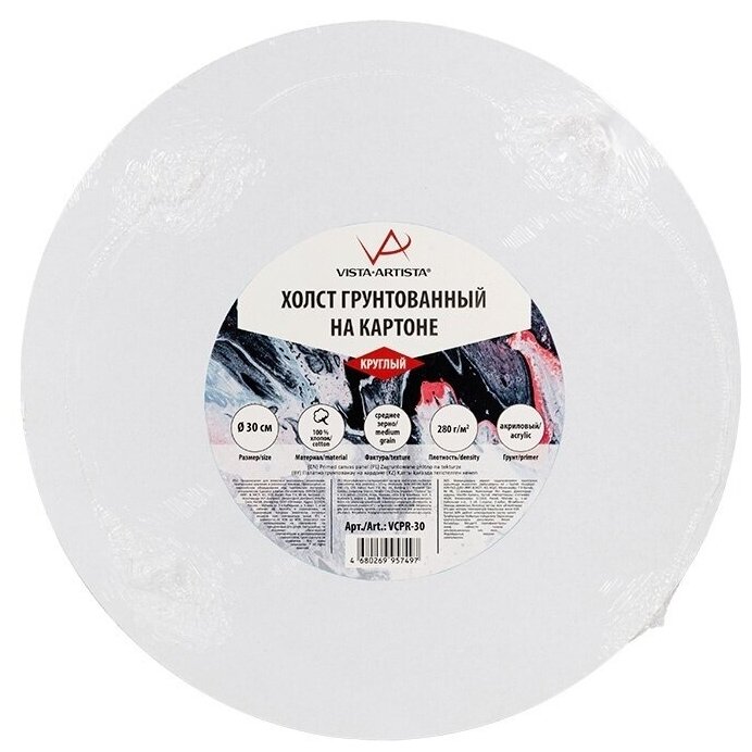 Холст на картоне Vista-Artista VCPR-30 круглый хлопок среднезернистый d 30 см Холст грунтованный на картоне круглый d 30 см