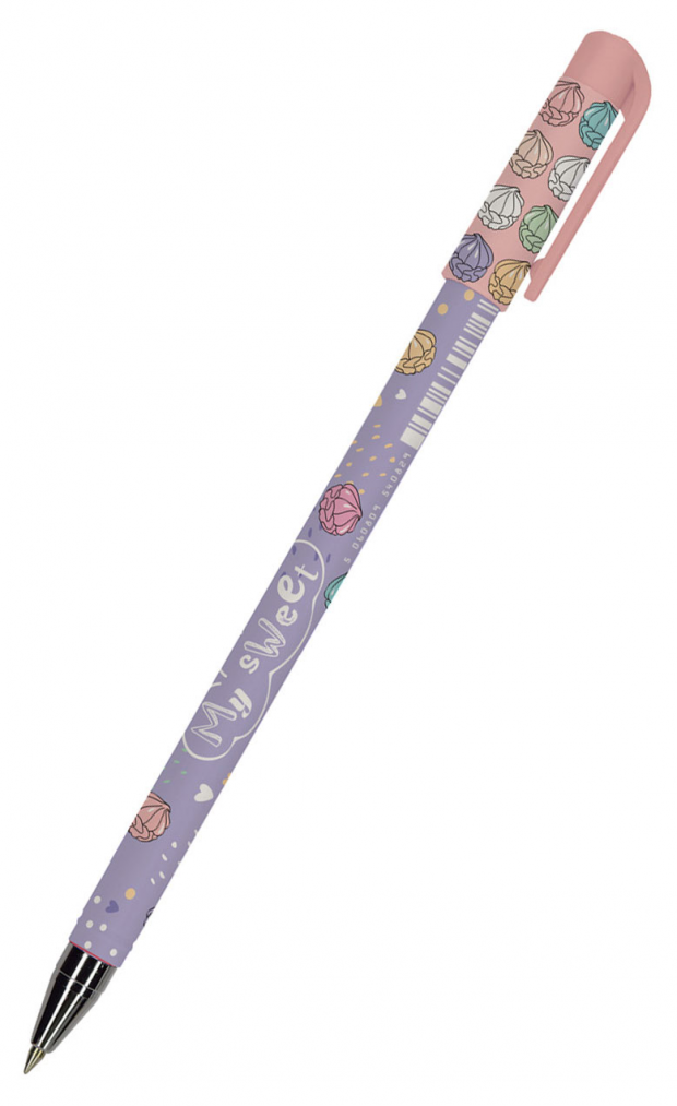 Для любителей пончиков в коллекции " Happy Write" есть шариковая ручка, украшенная рисунком "Разноцветные пончики". На нежно-розовом фоне рассыпаны яркие пончики. Корпус из качественного пластика покрыт резиновым напылением "Silk Touch", поэтому ручка не скользит при письме и надежно удерживается даже при отсутствии грипа. Закрывается колпачком контрастного оттенка с клипом, что позволит вам закрепить ручку в пенале или ежедневнике. Сменный стержень заполнен пигментными чернилами от немецкого производителя "Dokumental".