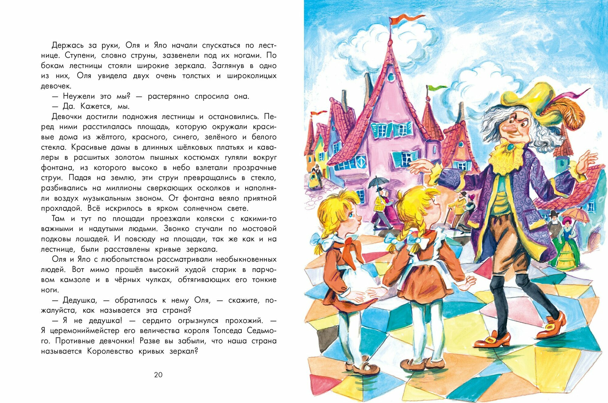 Одна из самых прекрасных детских книг! Взрослый читатель может, листая ее, лишь улыбнуться "советской наивности", но может и задуматься о параллелях между этой книгой и "1984" Оруэлла. Действительно, от королевства, где предписано всё видеть как в кривом зеркале, не так далеко до Океании, где "правда - это ложь". Полиграфически книга оформлена, в расчете на детского читателя, весьма хорошо.
