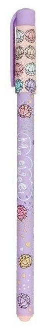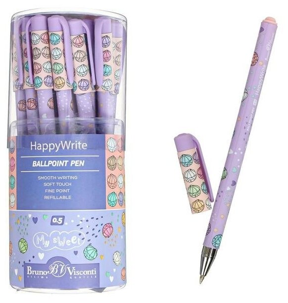 Для сладких моментов - ручка из коллекции "Happy Write". На сиреневом фоне рассыпаны разноцветные зефирки, сердечки и надпись "My sweet". Колпачок с клипом розового цвета также украшен зефирками. Это шариковая ручка с синими пигментными чернилами от немецкого производителя "Dokumental". Корпус ручки выполнен из качественного пластика с мягким резиновым покрытием "Silk Touch". Благодаря этому ручка не выскальзывает при письме и дарит приятные тактильные ощущения. Пишет тонко, четко и мягко, образуя линии толщиной 0,38 мм. Стержень сменный, длиной 140 мм.