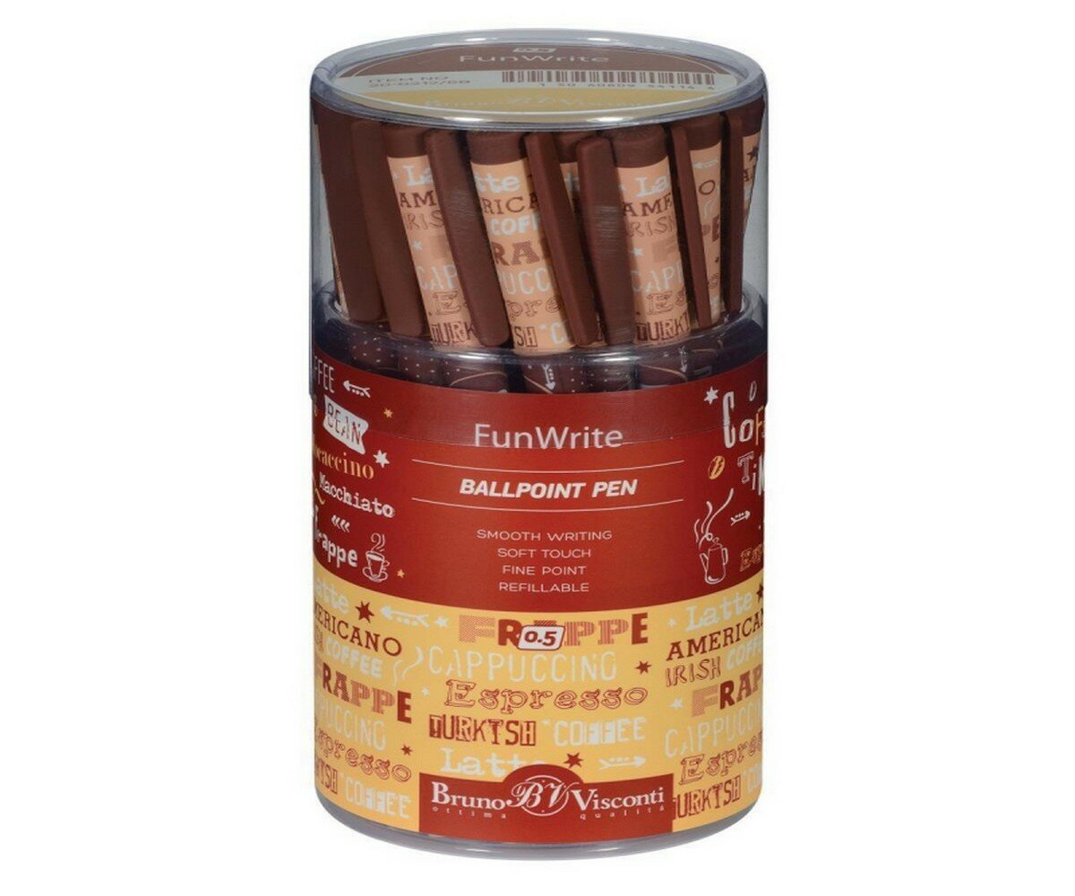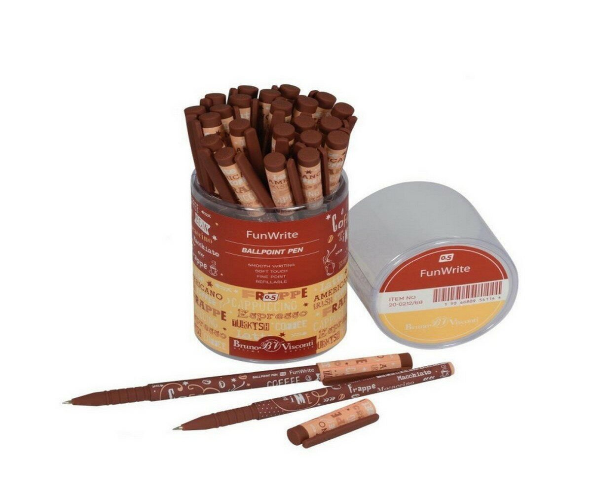 Шариковая ручка "Fun Write. Латте" - простой и стильный деловой аксессуар на каждый день. Напомнит вам о необходимости сделать кофе-паузу даже в самый загруженный день. Приятно оформлена в бежево-коричневых тонах и дополнена уютными принтами кофейной тематики. Корпус выполнен из качественного пластика с нескользящим резиновым напылением "Silk Touch". Ручка дополнена колпачком с клипом и удобным грипом. Стержень сменный, заполнен синими пигментными чернилами высокого качества от немецкого бренда "Dokumental". Пишет тонко и аккуратно, образуя при письме линии толщиной 0,38 мм.