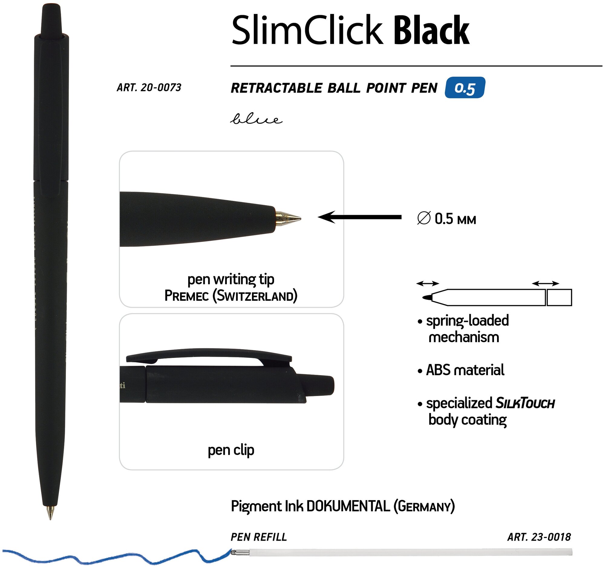 Ручка шариковая автоматическая SlimClick. Black синяя Bruno Visconti