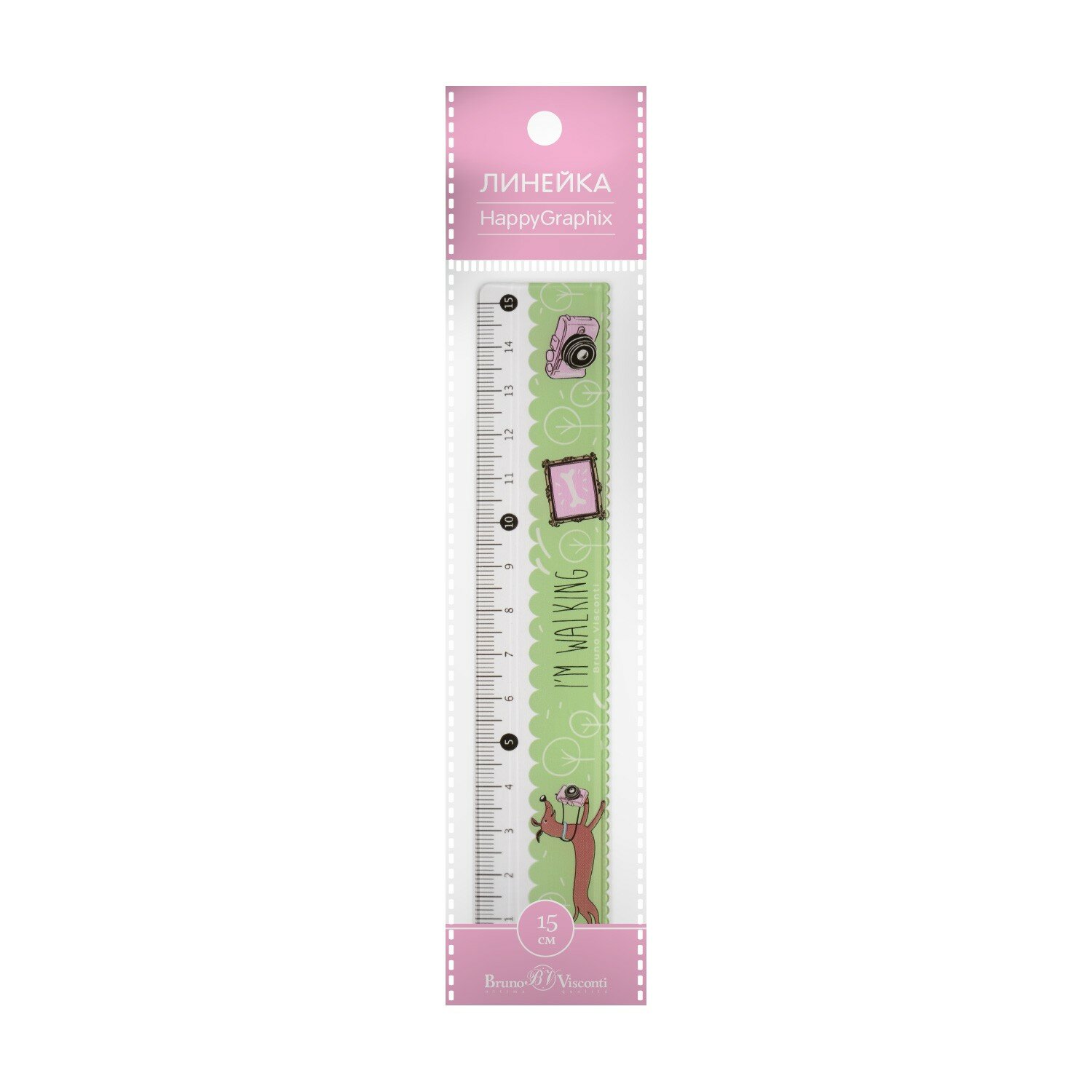 Линейка Собака-фотограф 15 см пластиковая с волнистым краем Bruno Visconti