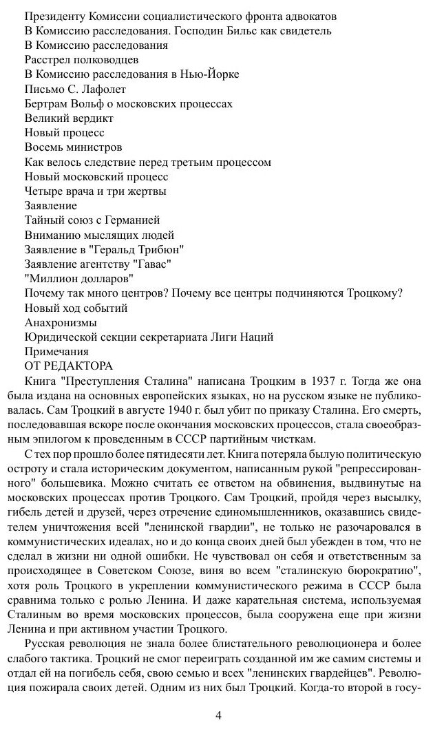 Книга была написана Троцким в 1937 г. Тогда же издана на основных европейских языках. На русском языке публикуется впервые. Она представляет собой ответ Троцкого на те обвинения, которые были выдвинуты против него на открытых московских процессах 30-х годов. Текст подготовлен по рукописи, хранящейся в Хогтонской библиотеке Гарвардского университета (США).