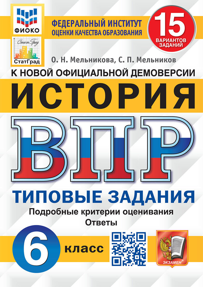 История Всероссийская проверочная работа 6 класс Типовые задания 15 вариантов заданий Подробные критерии оценивания Ответы (Мельникова Ольга Николаевна; Мельников Сергей Павлович); Экзамен, 2022