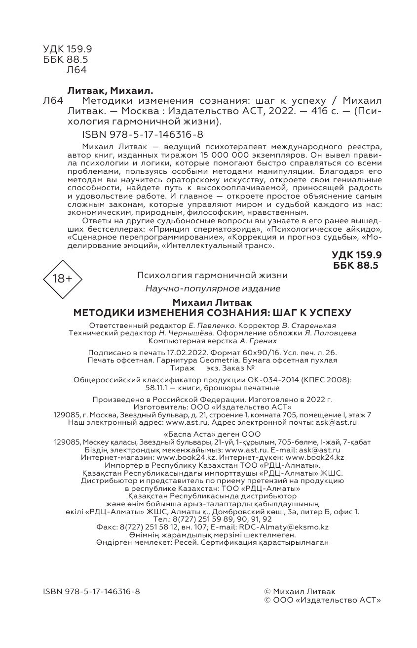 Методики изменения сознания: шаг к успеху (Михаил Литвак); Издательство АСТ, 2022