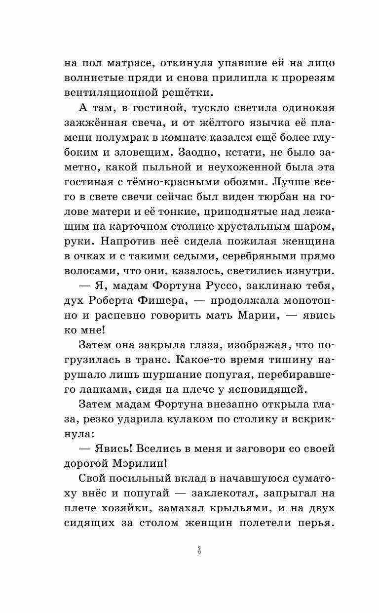 Абсолютно нелогичная девочка, с безумными поступками, ее мамаша, которая "медиум", все это в наше время... Не поверил в историю, а сама героиня начала откровенно бесить на 300х страницах. Кстати, сама история настолько оригинальна, что использовалась всего сто тысяч миллионов раз - призрак-друг в детстве, сиротка в комоде, злой отчим, запрет общаться с другими детьми
