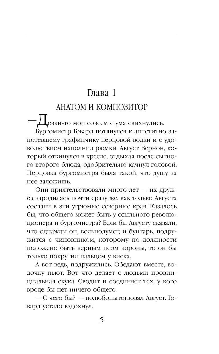 Вот уже много лет Август Вернон служит анатомом в далёком северном городе Эверфорт. Ссыльный участник госпереворота, "мученик, пострадавший за правду", он смирился со своей участью. Потерявший всякий смысл к существованию, прожженный циник, он был не готов, к тому, что снова сможет испытывать хоть какие-то чувства, кроме презрения и равнодушия.