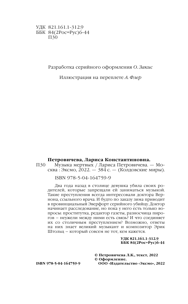 Книга: Музыка мертвых (Петровичева Лариса Константиновна); ООО "Издательство "Эксмо", 2022