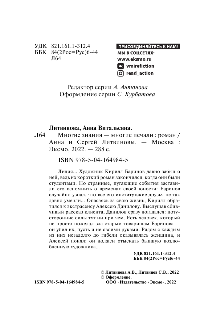 Многие знания — многие печали (Литвиновы Анна и Сергей, Литвинов Сергей Витальевич); ООО "Издательство "Эксмо", 2022