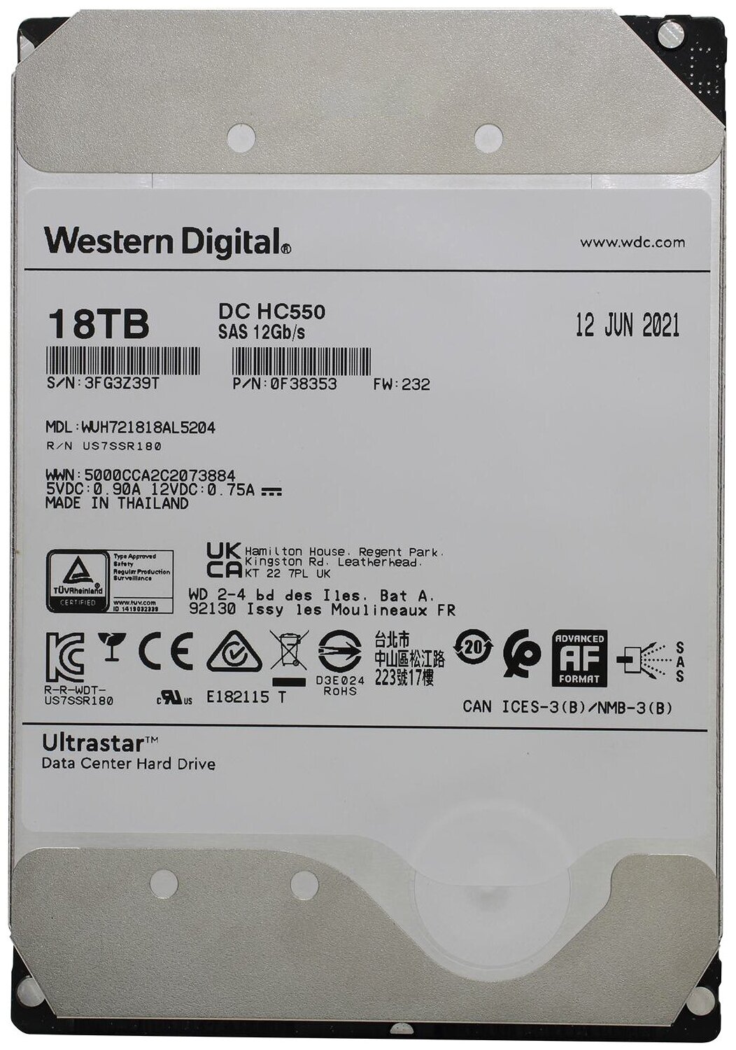 Жесткий диск Western Digital DC HC550 18Tb (WUH721818AL5204 0F38353) WD Ultrastar DC HC550 0F38353 WUH721818AL5204 18Tb