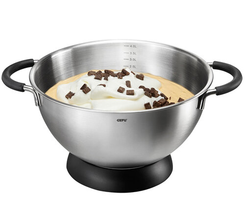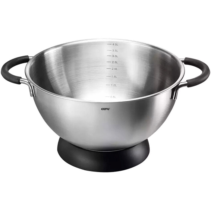 Благодаря большому объему чаши - 4 литра, она идеально подходит для смешивания теста, приготовления салатов или взбивания сливочных десертов. Пластиковая подставка удобна для устойчивости чаши на столе.