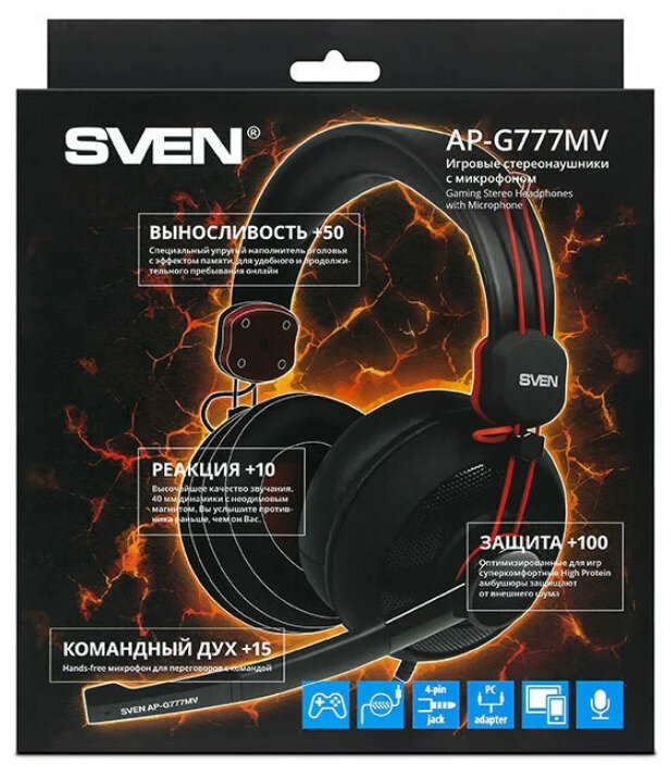 Наушники Sven AP-G777MV черный/красный (SV-014209) AP-G777MV черный/красный 1.2м мониторные оголовье (SV-014209) (SV-014209)