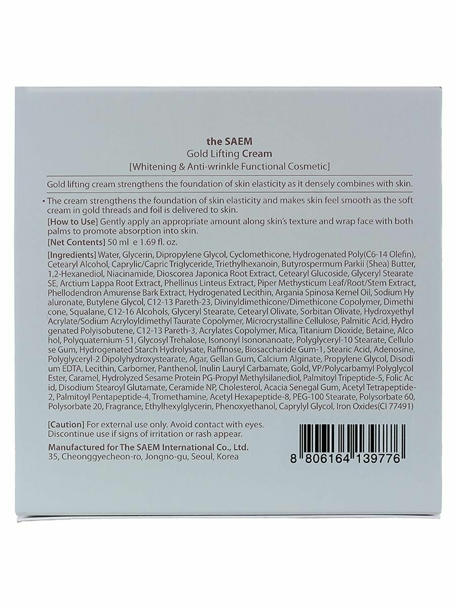 Крем антивозрастной с лифтинг-эффектом The Saem Gold Lifting Cream 50мл (СМ2374)