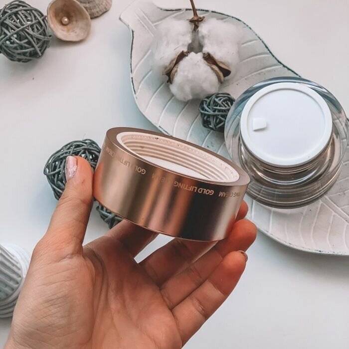 Крем с лифтинг-эффектом эффективно борется с первыми признакми старения кожи, золотые нити придает коже эластичность и упругость, осветляет. Золотые нити и фольга способствуют повышению кровотока и выработки питательных веществ, таким образом, начинает происходить естественный лифтинг: кожа разглаживается, уменьшаются морщины, ионы золота стимулируют микроциркуляцию и обогащают клетки кислородом.