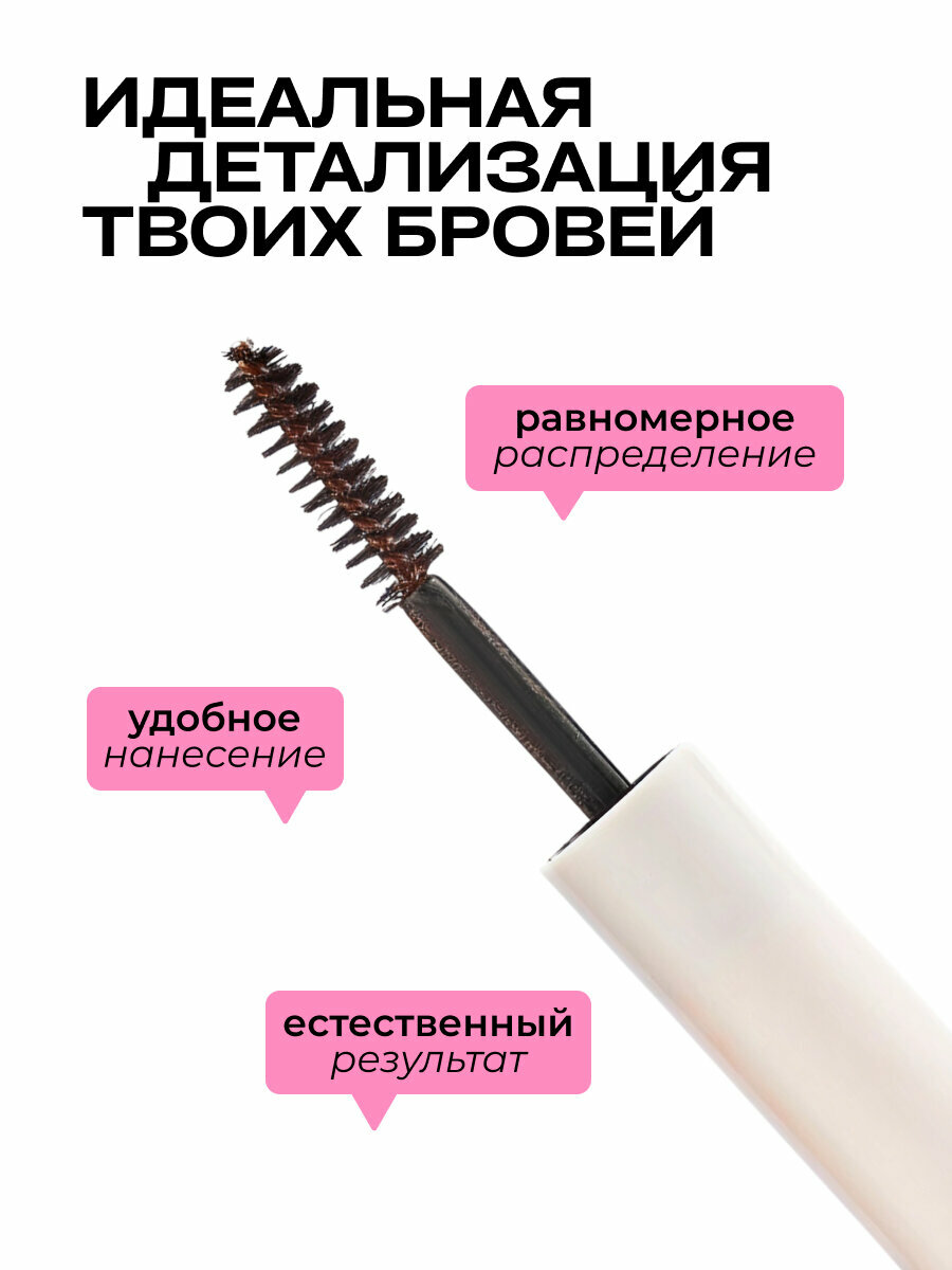 Уникальная тушь, придающая изящно-идеальную форму бровям девушек с золотистыми волосами. Эта декоративная косметика во многом превосходит популярные карандаши, так как обладает многочисленными преимуществами. Тушь, благодаря возможности разнообразить оттенки тонирования, обеспечивает цвет бровей, полностью гармонирующий с волосами. Удобная щеточка помогает смоделировать оптимальную форму бровей, идеально выпрямляя и направляя каждый волосок.