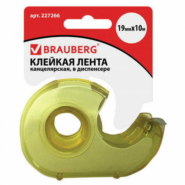 Клейкая лента в диспенсере (19 мм х 10 м лимонный) (227266) Brauberg