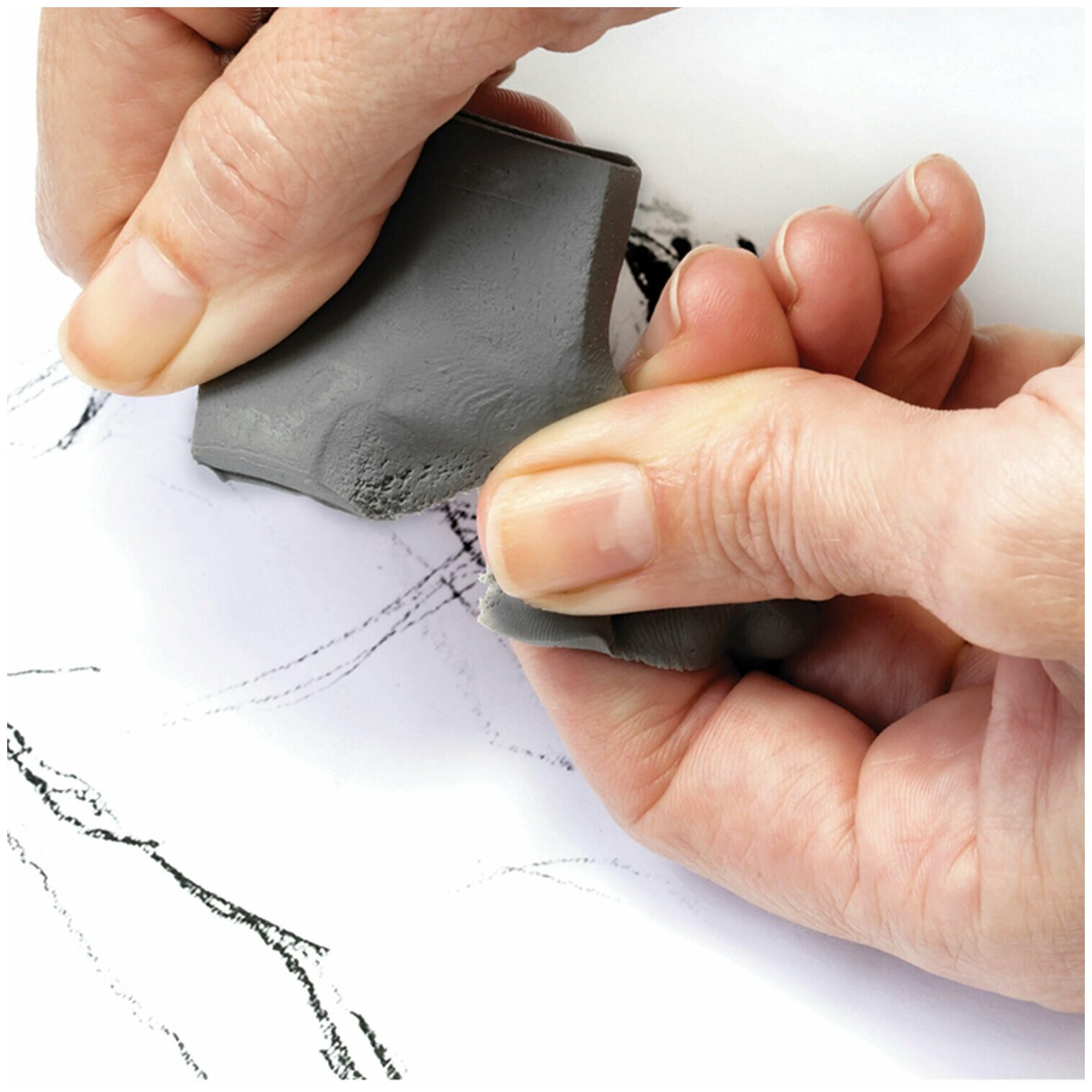 Пластичная тестообразная структура способствует более точному стиранию и созданию бликов. Абсорбирует графит любой степени твердости. Не царапает бумагу. Подходит для угольных и пастельных мелков. Ластик изготовлен из натурального каучука. Размер ластика — 40?36?10 мм.