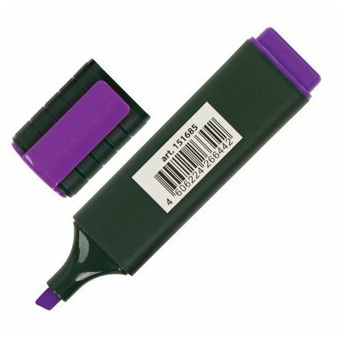 Текстовыделитель фиолетового цвета имеет плоскую форму корпуса, диаметр которого 25 мм. Скошенный наконечник имеет толщину линии письма от 1 до 5 мм, что обеспечивает удобство при работе с текстом, напечатанным мелким шрифтом, или таблицами. Благодаря особой водной основе чернил текстовыделитель не высыхает без колпачка в течение 8 часов. Текстовыделитель обладает экономным расходом чернил, при этом длина линии письма достигает 300 метров. Чернила быстро впитываются и тем самым предотвращают размазывание в процессе использования. Светоустойчивые чернила не выцветают даже на открытом солнце. Цвет клипа текстовыделителя соответствует цвету чернил.