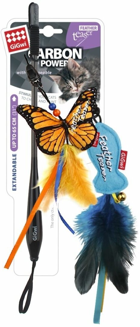 Игрушка для кошек GiGwi Carbon Power Дразнилка телескопическая бабочка + мышка 30см