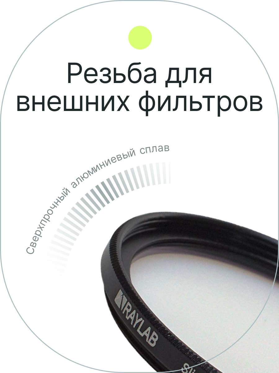 Raylab UV Slim — защитный ультрафиолетовый светофильтр с тонкой оправой, предназначенный для постоянного использования. Аксессуар эффективно устраняет воздействие УФ-излучения, имеет высокое качество и широкую совместимость. Фильтр от Рейлаб может использоваться в качестве защитного атрибута. Его установка не снизит чистоту кадров, но поможет уберечь переднюю линзу объектива от пыли, влаги и отпечатков пальцев.