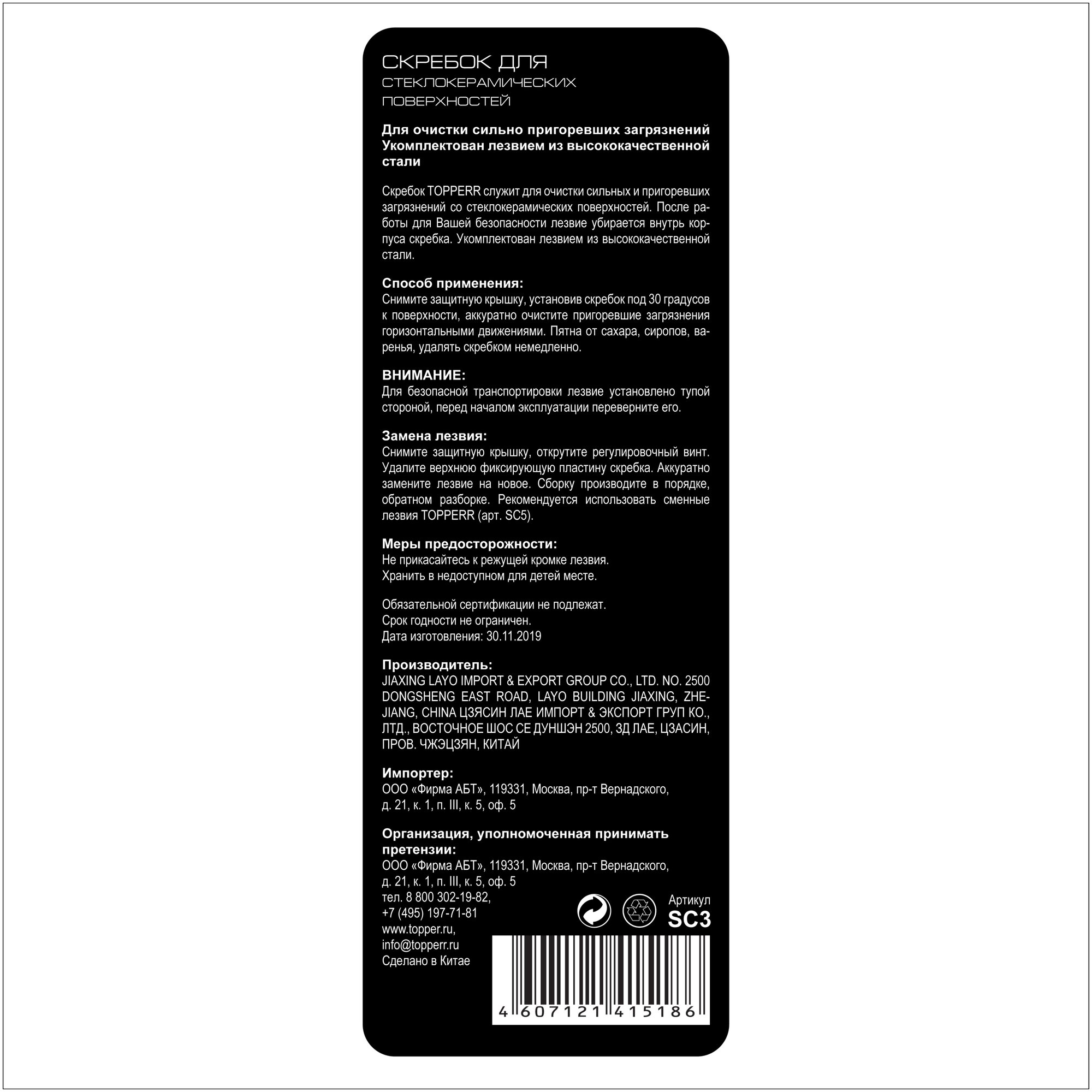 Тип товара: Скребок для стеклокерамики