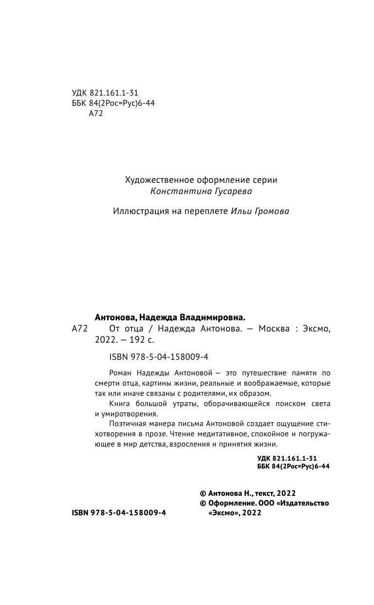 Книга: От отца (Антонова Надежда Владимировна); ООО "Издательство "Эксмо", 2022