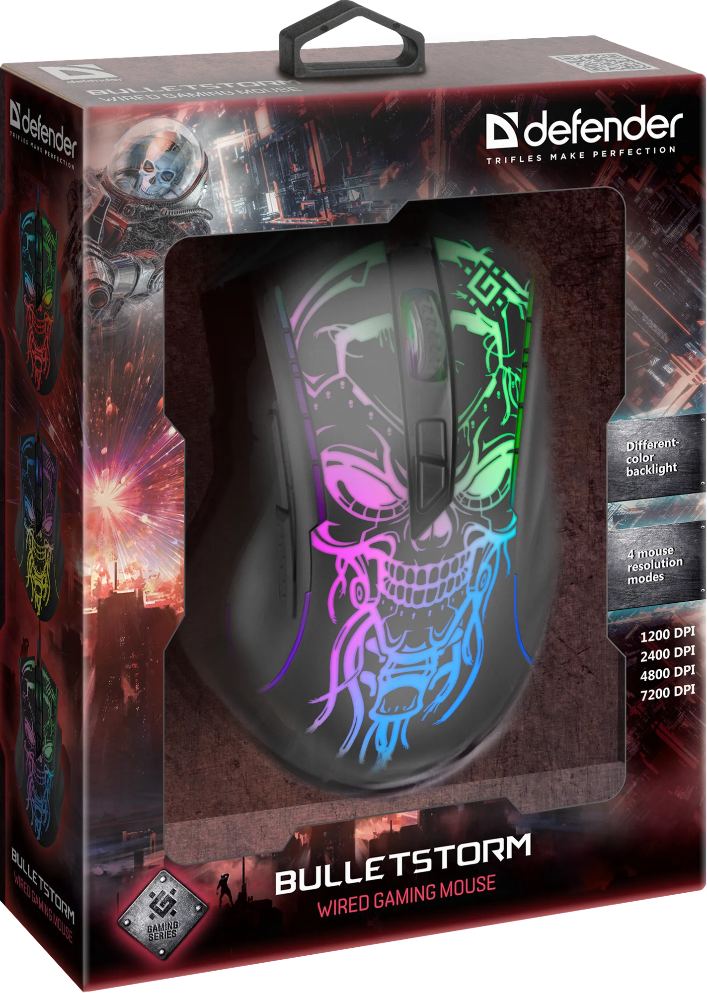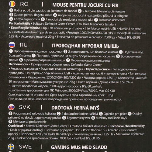 | Прочее | Мышь проводная Defender Bulletstorm GM-928 - отличный игровой манипулятор, который подарит вам долгожданные победы в многочисленных виртуальных баталиях. Корпус, выполненный из пластика, обладает эргономичной формой и имеет прочное, приятное на ощупь прорезиненное покрытие. Мягкая разноцветная подсветка дополняет внешний вид этого компьютерного "грызуна", делая работу с ним в темное время суток максимально комфортной.,Проводная мышка Defender Bulletstorm GM-928 имеет шесть кнопок и колесико в своем оснащении, включая кнопку смены разрешения датчика. В устройстве используется оптический светодиодный сенсор, максимальное разрешение которого соответствует 7200 dpi. Питание данная модель получает по шине. |