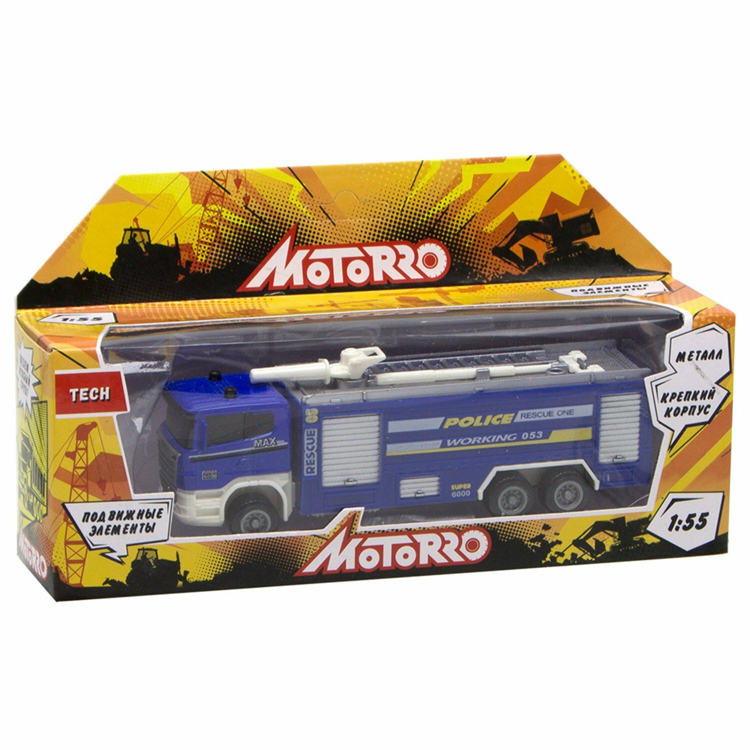 Motorro Металлическая машина Служба спасения с элементами из пластмассы в масштабе 1:55 из серии Техника. Русифицированная упаковка. Подвижные части кузова.