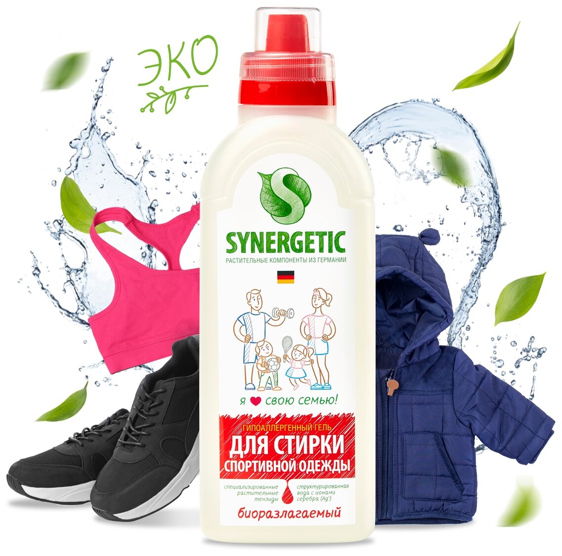 Гель для стирки спортивной одежды и мембранных тканей SYNERGETIC Гель для стирки спортивной одежды и мембранных тканей 750 мл