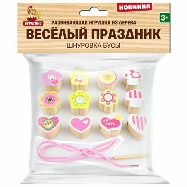 Деревянная игрушка шнуровка-бусы Весёлый праздник ТМ Буратино – увлекательная и полезная игра для вашего малыша.