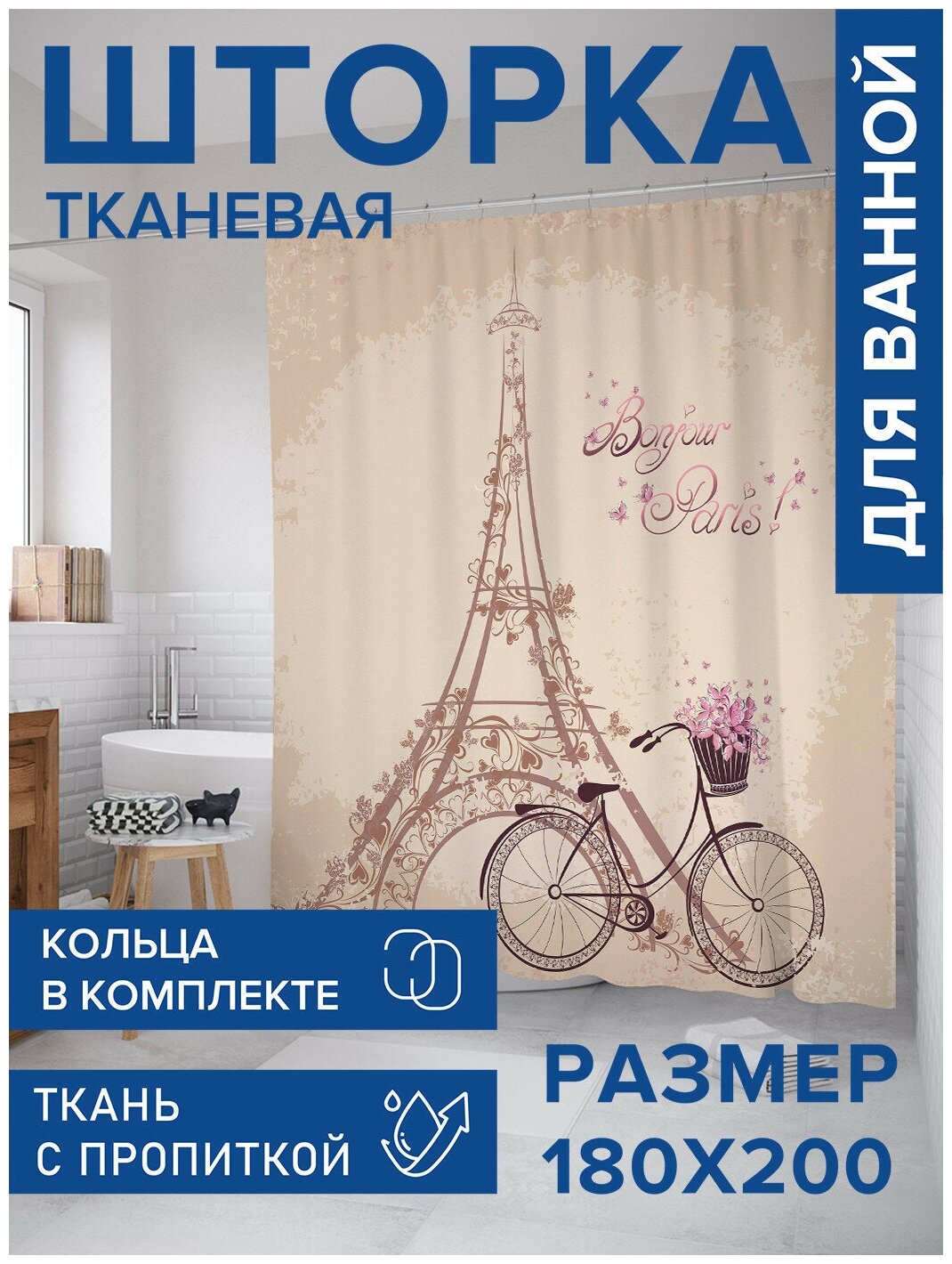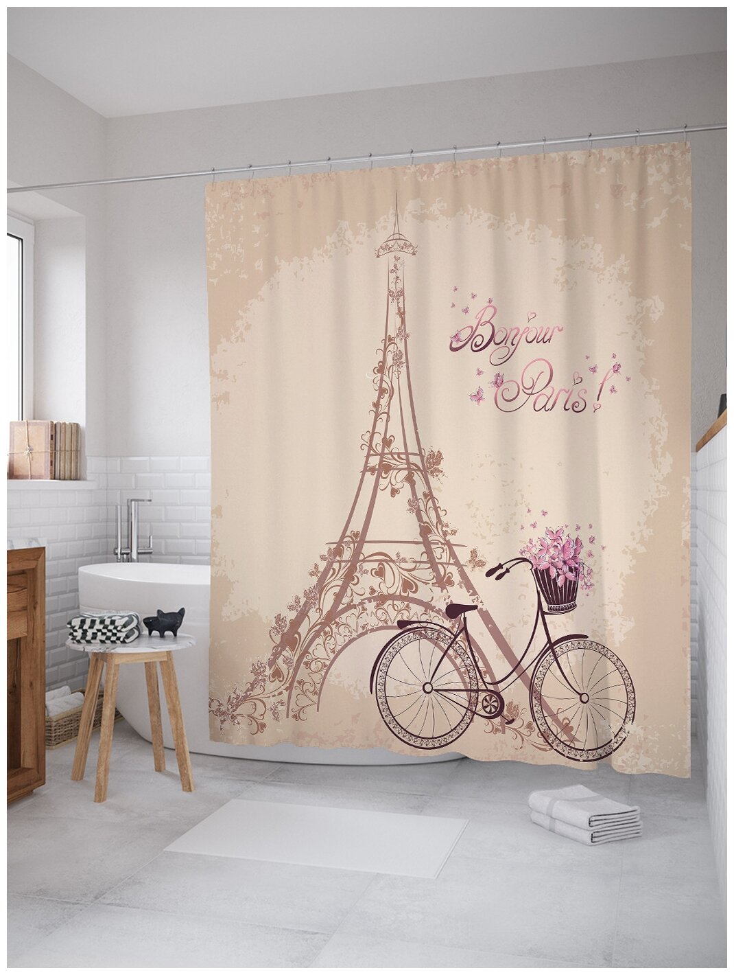 Шторка-занавеска для ванной JOYARTY Штора занавеска для ванной В Париж на велосипеде из сатена 180х200 см с крючками