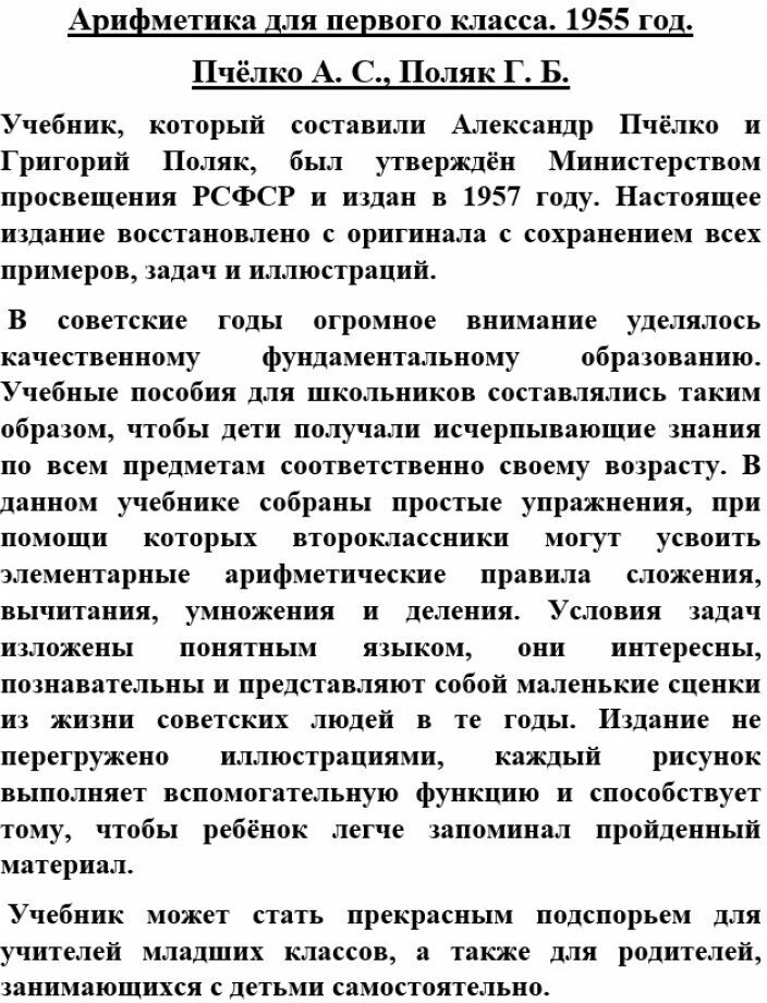 Арифметика для первого класса. 1955 год (Пчелко Александр Спиридонович, Поляк Григорий Борисович); Наше Завтра, 2022