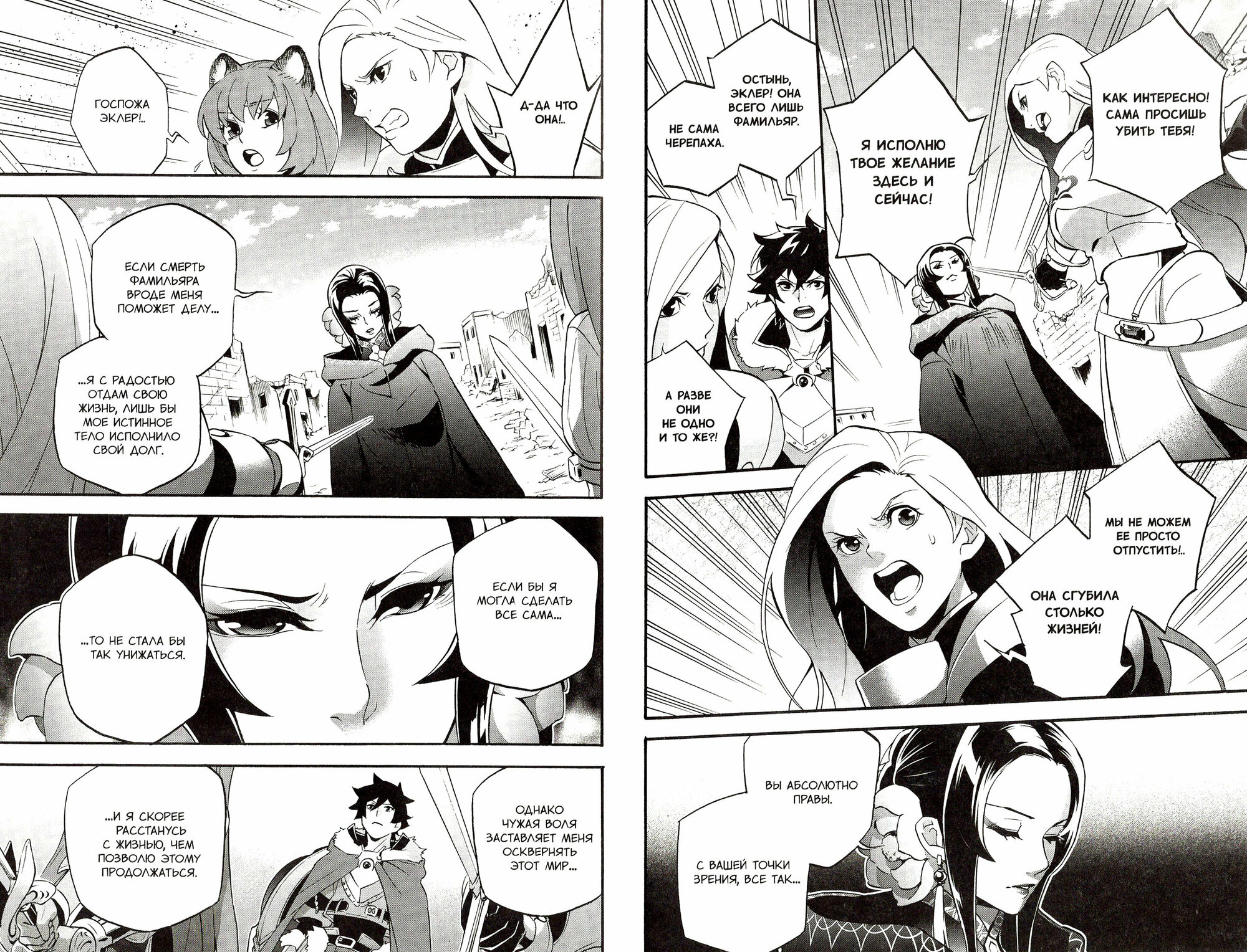 Пытаясь предотвратить разрушение королевства, Наофуми и его товарищи наконец-то встречают Ост Хорай, фамильяра Призрачной черепахи. Она молит помочь «исполнить ее долг», но все попытки тщетны — черепаха становится лишь сильнее. После изнурительной борьбы Наофуми и его товарищи наконец-то разыскивают сердце черепахи, но кого они встречают на своем пути! Неужели старые знакомцы действительно враги и замыслили что-то ужасное?..