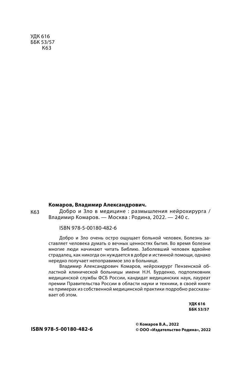 Добро и Зло в медицине. Размышления нейрохирурга (Владимир Комаров); Родина, 2022