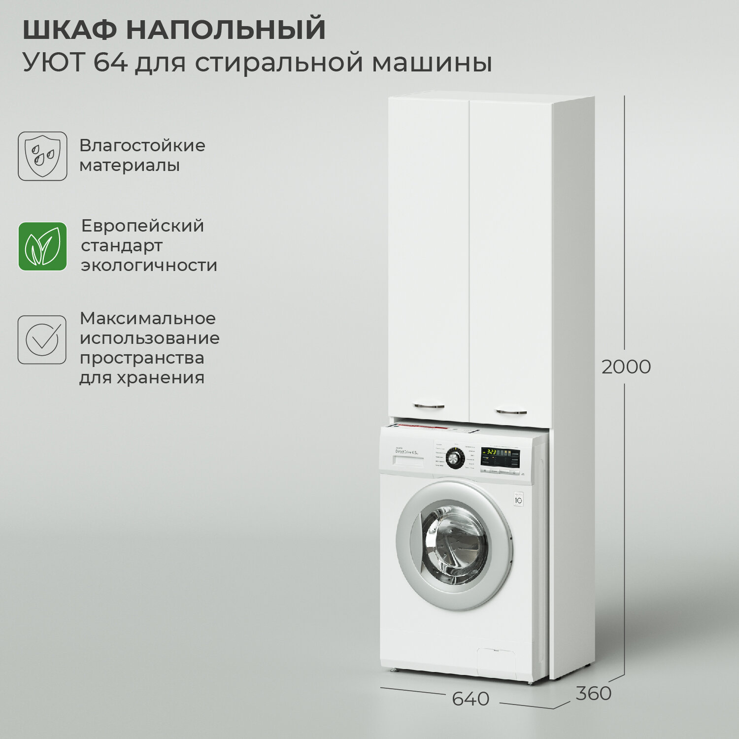 шкаф напольный итана уют 640х360х2000 для стиральной машины белый глянец