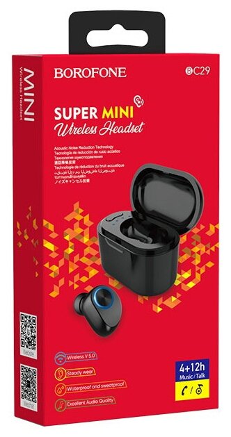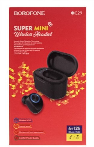 Беспроводная гарнитура c зарядным чехлом Borofone BC29 Lambent Mini wireless headset, предназначена для приёма вызовов с телефона в автомобиле и прослушивания музыки по беспроводной связи Bluetooth.