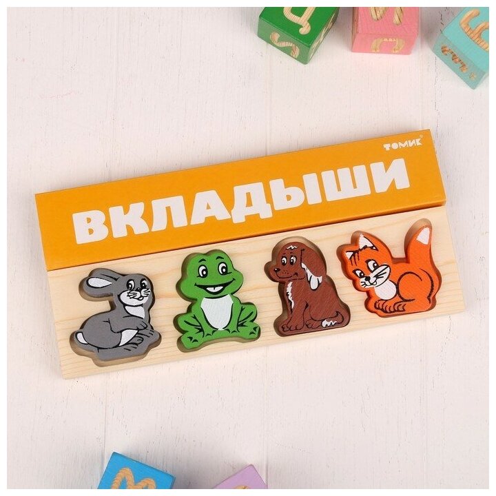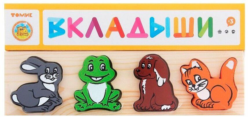 Рамка-вкладыш — очень полезная развивающая игрушка, которая подходит для самых маленьких. Ребенок, осваивающий окружающий мир, делает это через манипуляции с различными предметами. Малыши неслучайно любят бросать вещи, передвигать, щупать, чтобы понять, из какого материала они состоят. Именно эту потребность в познании мира через манипуляции с предметами удовлетворяет рамка-вкладыш. Это деревянная панель с выемками под различные вырезанные тоже из дерева игрушки. Бренд "ТОМИК", производитель игрушек из натурального дерева, предлагает вашему вниманию рамку-вкладыш "Животные".Что входит в комплект? Деревянная основа в виде рамки с выемками для фигурок животных Деревянные цветные фигурки: зайчик, лягушонок, котик и собачкаПочему игрушки "ТОМИК" так полезны для детей? Рамка-вкладыш "Животные" заинтересует как мальчиков, так и девочек! Задача ребенка — найти для фигурки подходящую выемку. Это не сразу получается у малыша, но методом подбора, поначалу с ошибками, он находит нужные совпадения. Такая игра развивает не только мелкую моторику, но и логическое мышление. Для малыша это необходимая практика в познании окружающего мира. Кроме того, совсем маленькие дети узнают новых животных, которых они раньше еще не знали. Замечательно, когда в этой игре принимают участие родители. Они могут рассказать свою историю о каждом персонаже. Русские сказки о животных дают прекрасные образцы простых, коротких и доступных для малышей сказок.На заметку родителям Бренд "ТОМИК" — принадлежит компании "Томь-сервис", зародившейся в сердце Сибири. Совершенно не зря основной материал для создания лучших развивающих игрушек — это дерево хвойных пород. Производитель выбрал наилучшее качество древесины для того, чтобы детские наборы, конструкторы, "развивалки" были долговечными и безопасными для малышей. "Томь-сервис" использует для оформления игрушек только нетоксичные краски на водной основе. В коллекции рамок-вкладышей несколько тематических вариаций: "Животные", "Овощи и фрукты", "Игрушки", "Транспорт. Вы можете приобрести как тот набор, который, по вашему мнению, наиболее заинтересует вашего малыша, а также собрать все, так как они раскрывают различные аспекты живого и предметного мира для ребенка.