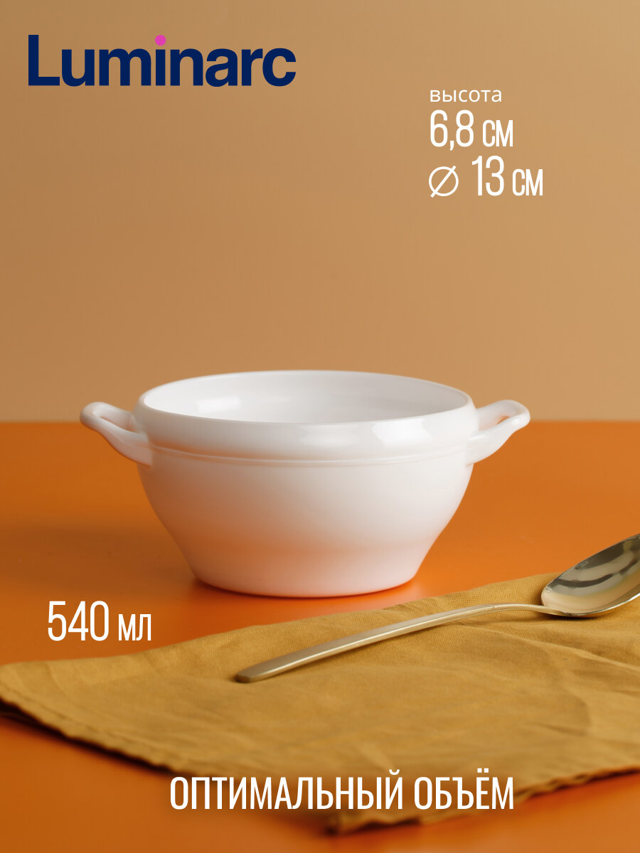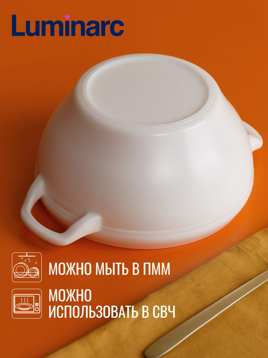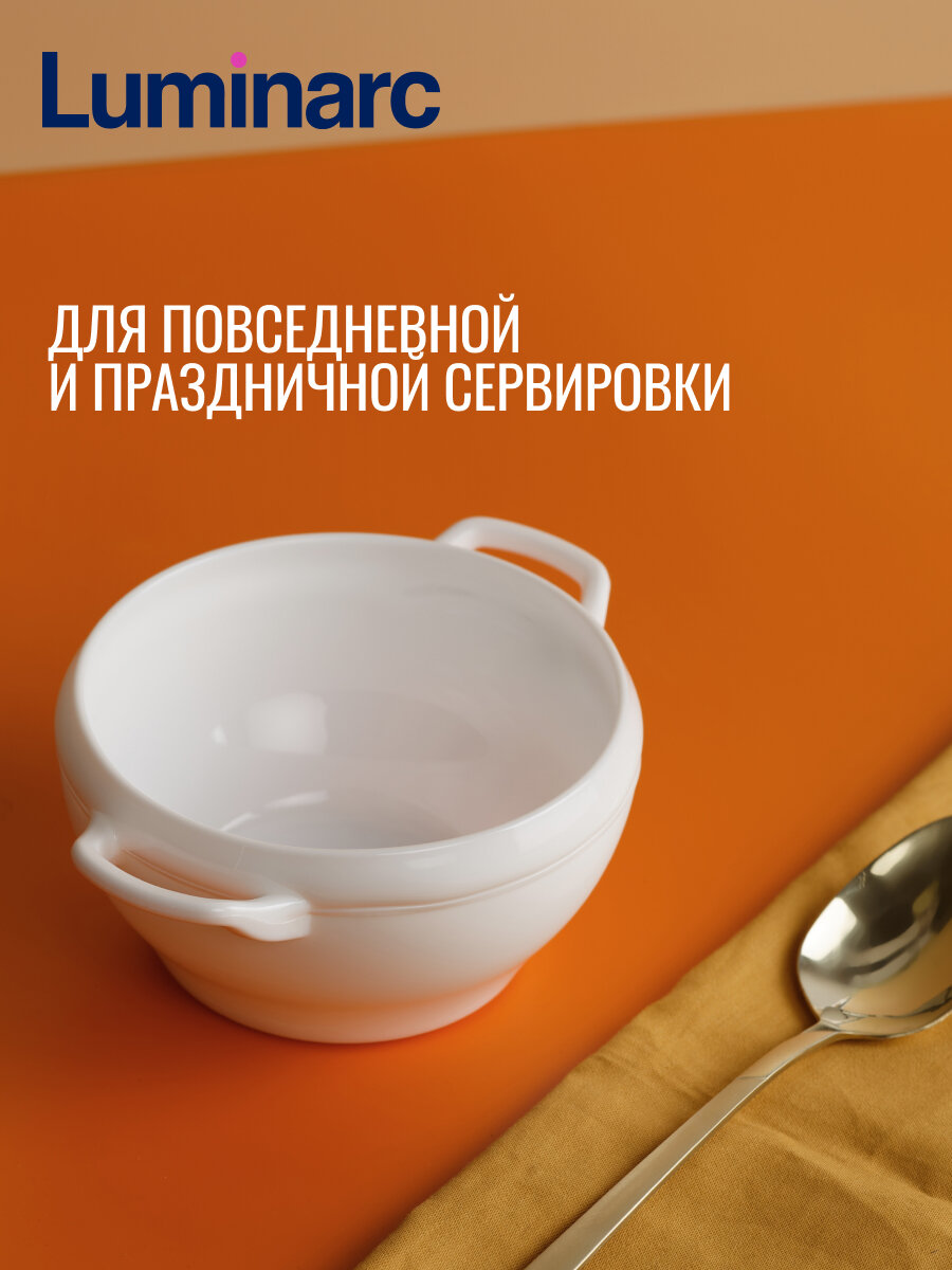 Бульонница ''Комплементс'' - классическая белая супница с двумя удобными ручками для подачи. Отлично впишется в любую сервировку благодаря простому классическому дизайну. Все стекло ''Luminarc'' проходит процедуру уплотнения благодаря чему более эффективно выдерживаем механические повреждение и перепады температуры. Можно мыть в посудомоечной машине, использовать в СВЧ-печи.